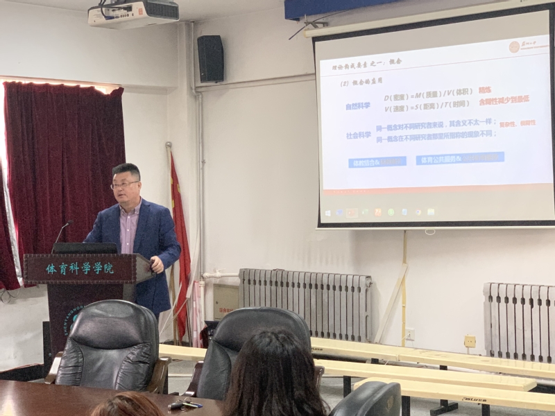 樊教授首先通过精准的数据,表明教育部抽检出不合格的硕士论文主要体现在作者科研能力不足、论文规范性欠缺和论文创新性和价值性不高等问题。指出学位论文需强调其理论化的过程,需要刨析总结体育现象出现的原因与问题,通过写作过程中运用恰当方法解释、精准的理论支撑以及规范表达范式来完成论文。